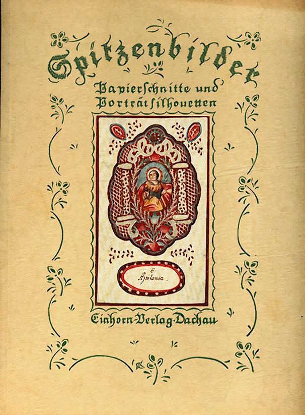 Bucherer, Max (Hg.): Spitzenbilder, Papierschnitte u. Portraitsilhouetten. Unter Mitwirkung u.a. von Adolf Spamer. Dachau, Einhorn-Verlag o. J. (um 1921), 4°, 142 S., zahlr. Abb auf Taf.